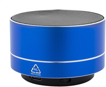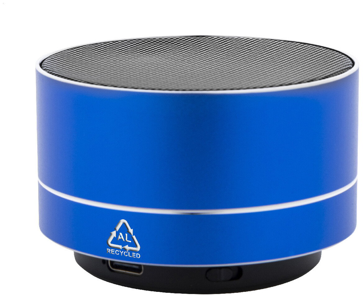 Bezdrátový reproduktor z recyklovaného hliníku s kovovou síťovinou, LED světlem na spodní straně a dobíjecí baterií (300 mAh). S funkcí handsfree hovorů a přehrávání MP3 z micro SD karty. Včetně nabíjecího kabelu USB.
