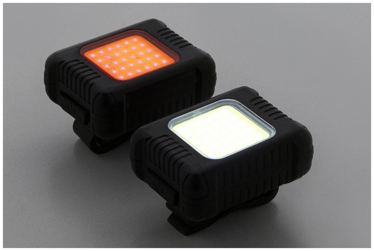 Sada 2 dobíjecích COB světel na kolo s plastovým pouzdrem, vestavěnou dobíjecí baterií přes USB (100 mAh) a elastickými montážními popruhy. Se 3 režimy svícení. Včetně nabíjecího kabelu přes USB. Neprodejné v následujících zemích: Německo, Rakousko, Švýcarsko.