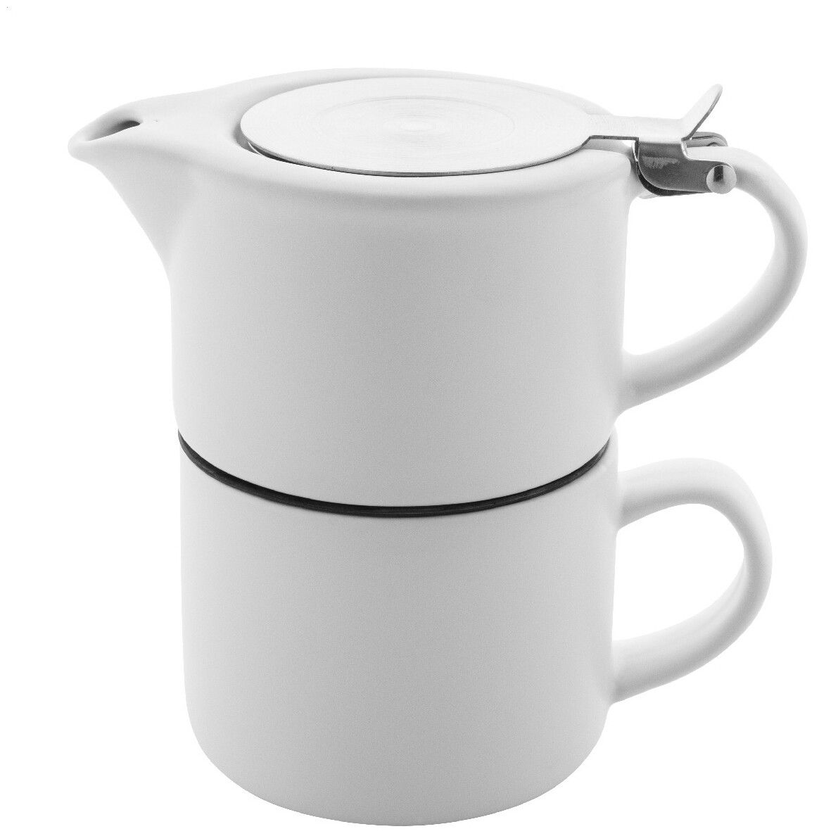 Vysoce kvalitní keramická čajová sada s matným povrchem. Včetně konvice na čaj (430 ml) s víčkem z nerezové oceli a sítkem na čaj, navržená pro úhledné stohování na odpovídající hrnek (400 ml). V krabičce z kraftového papíru.