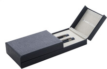Elegantní sada kovového kuličkového pera a rolleru s lesklými detaily v barvě antracit. V barevně sladěné dárkové krabičce a s modrou náplní. Produkt značky André Philippe.