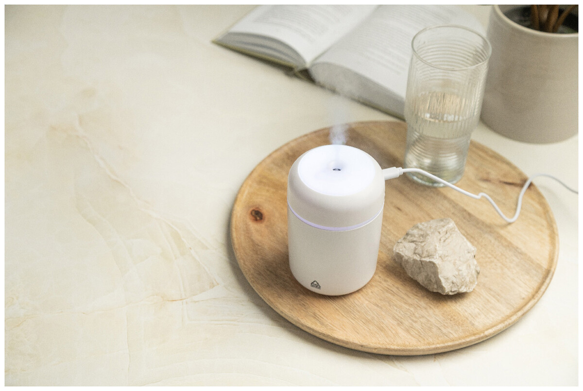 Stolní zvlhčovač vzduchu z recyklovaného ABS materiálu s vícebarevným LED světlem. Včetně USB nabíjecího kabelu. Objem nádržky: 280 ml.