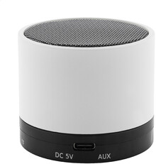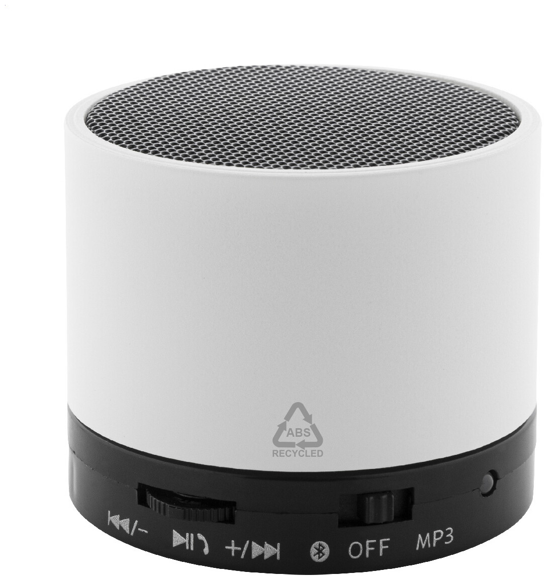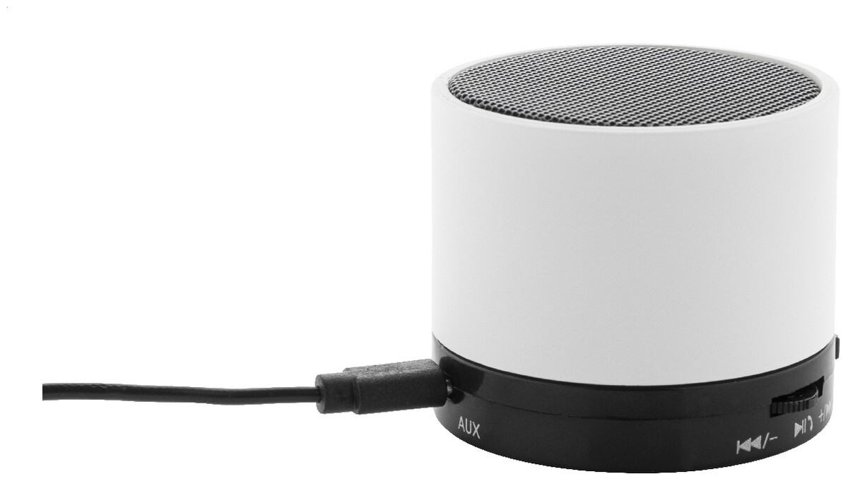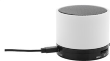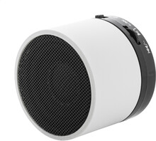 Bezdrátový reproduktor z recyklovaného ABS v pogumovaném pouzdře s kovovou síťovinou a dobíjecí baterií (300 mAh). S funkcí handsfree hovorů a přehrávání MP3 z micro SD karty. Včetně nabíjecího kabelu USB.