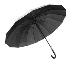 Velký automatický deštník odolný proti větru s 16 panely, rukojetí z PU kůže, kovovým rámem a žebry ze skelných vláken. 190T RPET ponge. S výrazným štítkem RPET. Ve značkovém přenosném pouzdře. Výrobek značky André Philippe.