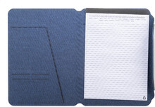 Složka na dokumenty A4 z RPET polyesteru s několika vnitřními kapsami a magnetickým zapínáním s detaily z ořechového dřeva. S linkovaným blokem z recyklovaného papíru s 20 listy.