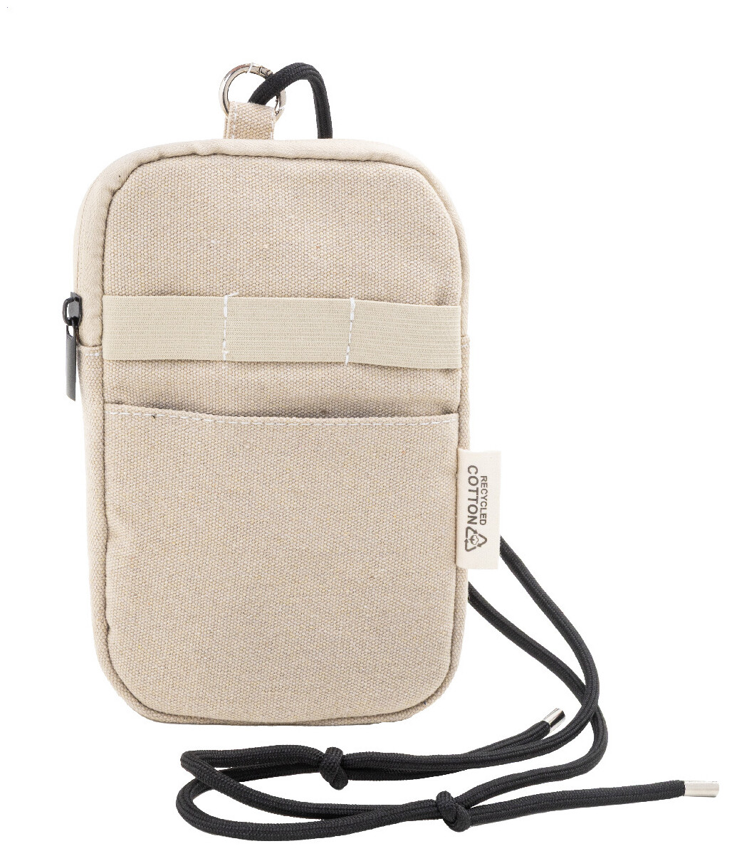 Crossbody taška na mobilní telefon z recyklovaného plátna s hlavní přihrádkou na zip, přední kapsou a nastavitelnou šňůrkou z polyesteru RPET. Materiál: 70 % recyklovaná bavlna a 30 % polyester RPET. S výrazným štítkem z recyklované bavlny.