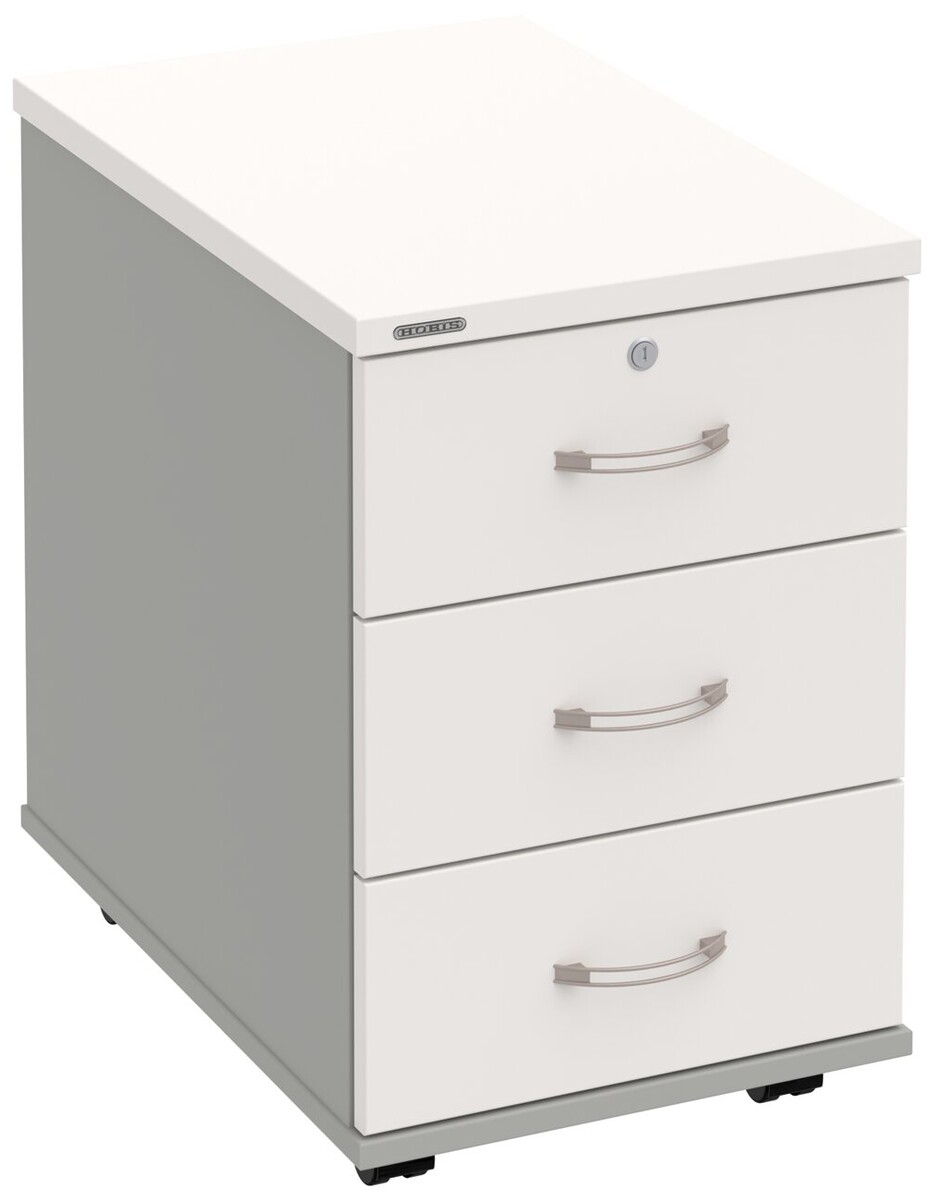 Kancelářské kontejnery nabízíme ve 4 modelech, které se liší uspořádáním zásuvek. Využití naleznou,spolu s ostatními řadami kancelářského nábytku HOBIS, ve všech kancelářských prostorech. Rozměry jsou 40 cm šířka, 60 cm hloubka a 60 cm výška. Protože jsme si vědomi nároků na zajištění bezpečnosti obsahu kontejnerů, osadili jsme většinu z nich zámky s centrálním zamykáním. Stačí zamknout jednu zásuvku a současně tak uzamknete i všechny ostatní. Díky integrovanému systému STOPCONTROL v uzamykacím mechanismu se nemusíte bát převrhnutí kontejneru nebo případného skřípnutí rukou. Systém zaručí, že při otevření jedné zásuvky se ostatní zásuvky automaticky zablokují. Stoly můžete vybírat z nabídky kancelářského nábytku HOBIS.