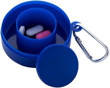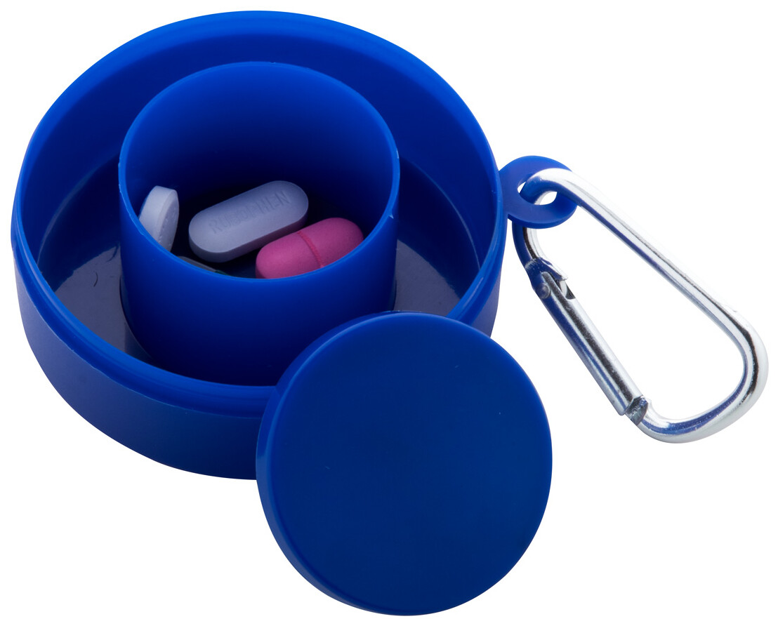 Skládací kelímek z recyklovaného PP plastu s přihrádkou na pilulky a kovovou karabinou. 220 ml. Bez BPA.