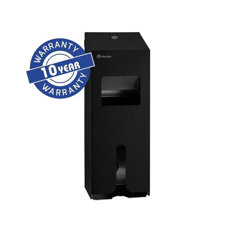 Elegantní zásobník na hygienické potřeby Merida STELLA Economy v matném černém provedení je ideální doplněk pro moderní toalety v kancelářích, školách i veřejných prostorách. Spojuje praktické použití s designovým a odolným materiálem.