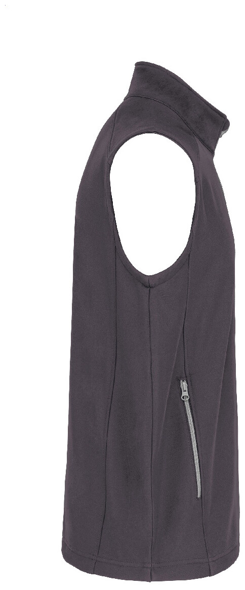 Dvouvrstvá softshellová vesta na zip s bočními kapsami na zip. S kontrastními zipy. Vodoodpudivá tkanina. Vnější strana: 95 % polyester a 5 % elastan. Vnitřní strana: 100% polyester micro polar fleece. 300 g/m2. Výrobek značky Kariban.