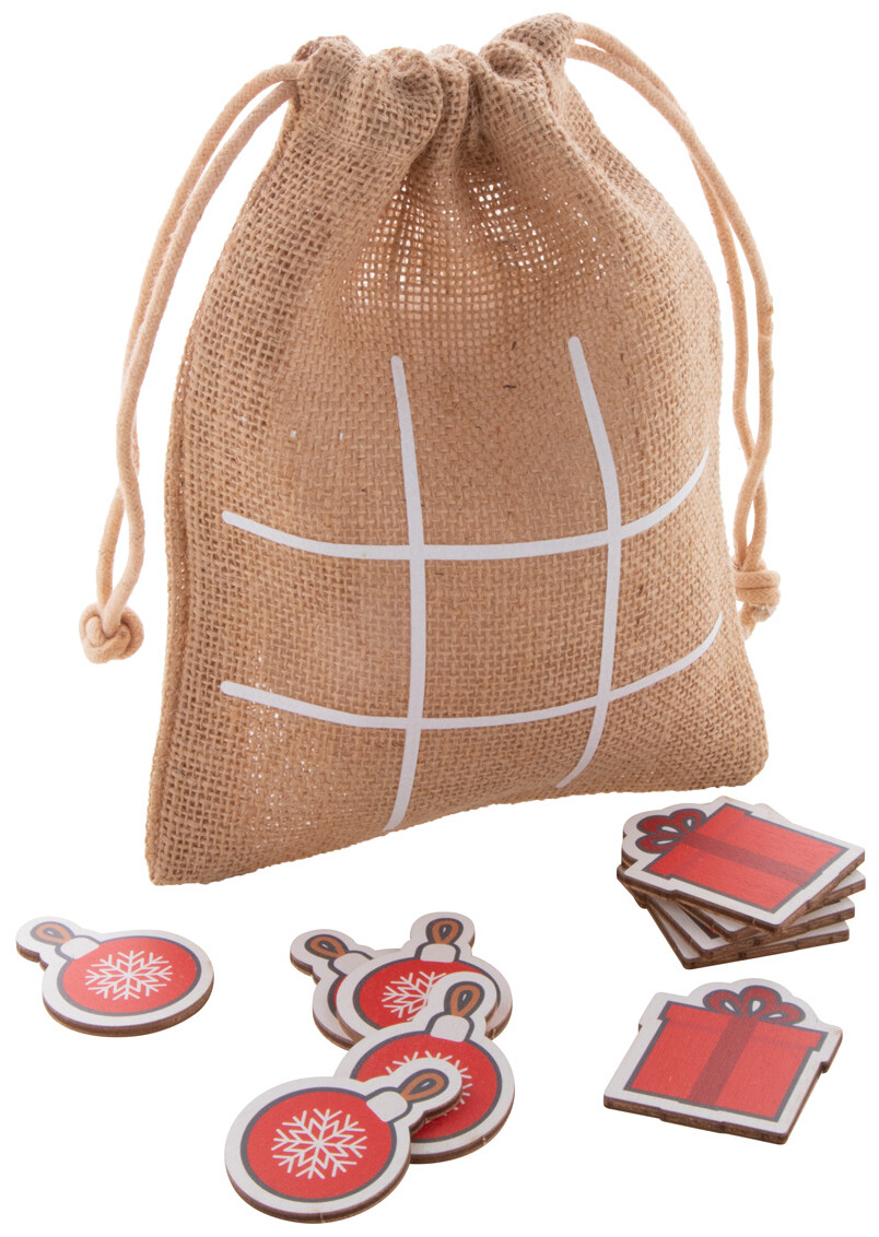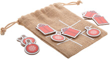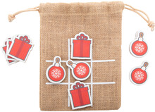 Piškvorky s vánočním designem z březové překližky s 10 žetony a jutovým pytlíkem.