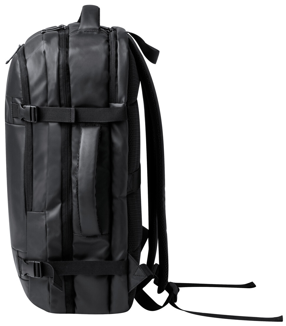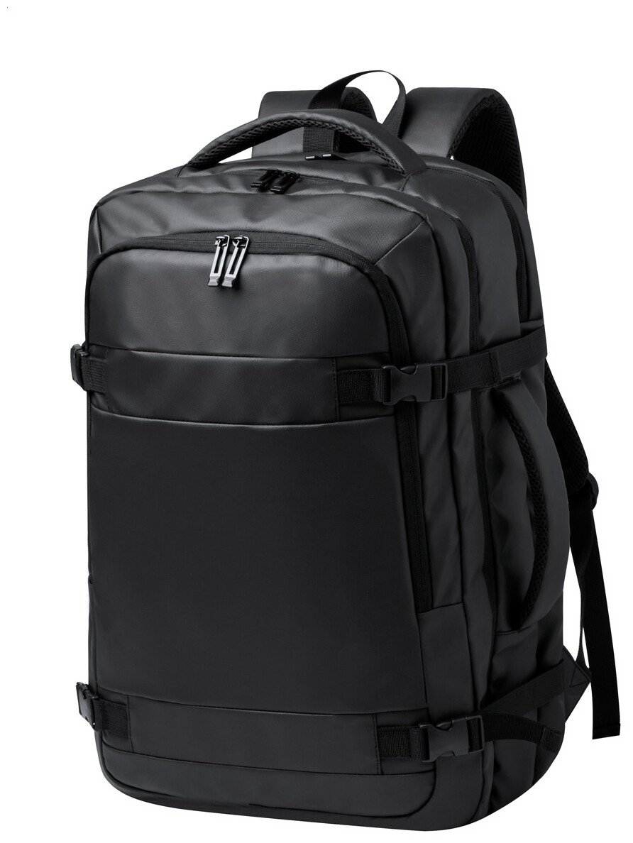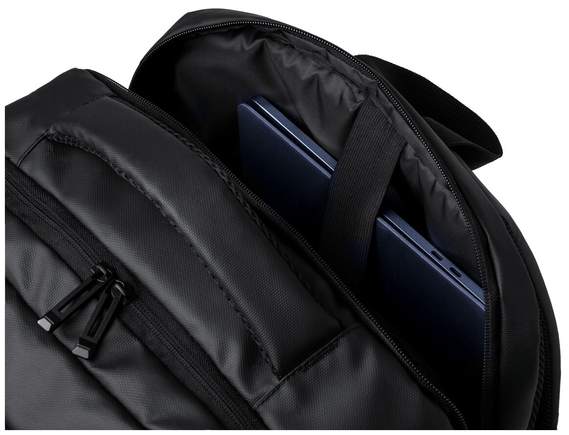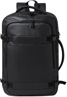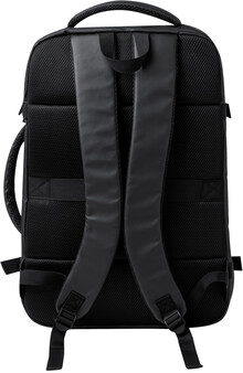 Dvoufunkční batoh a taška na dokumenty z PU kůže s přihrádkami na zip, polstrovanou přihrádkou na notebook (17") a síťovanou přihrádkou, popruhem na vozík, polstrovanými zády a ramenními popruhy.