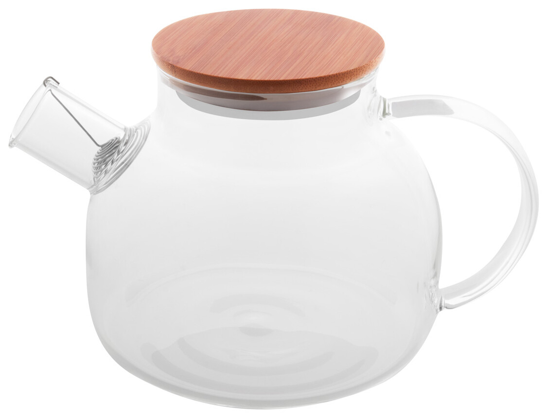 Čajová konvice z borosilikátového skla s bambusovým víčkem a nerezovým sítkem na čaj v kraftové papírové krabičce. 1000 ml.