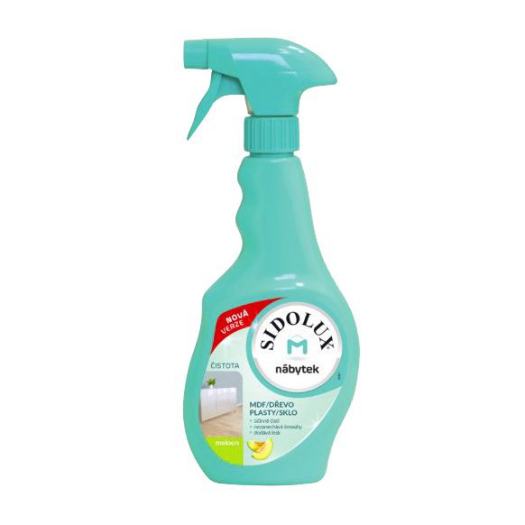 Čistící sprej na nábytek Sidolux M proti prachu je multifunkční rozprašovač vhodný na čištění hladkých povrchů v domácnostech. Prostředek je možné použít na dřevěné povrchy, plast, lakované povrchy, nerez a sklo. Dále je vhodný na čištění tvrdých ploch v interiérech automobilů – výplní dveří, palubních desek, apod. Obsažená vonná kompozice příjemně provoní čištěný prostor.