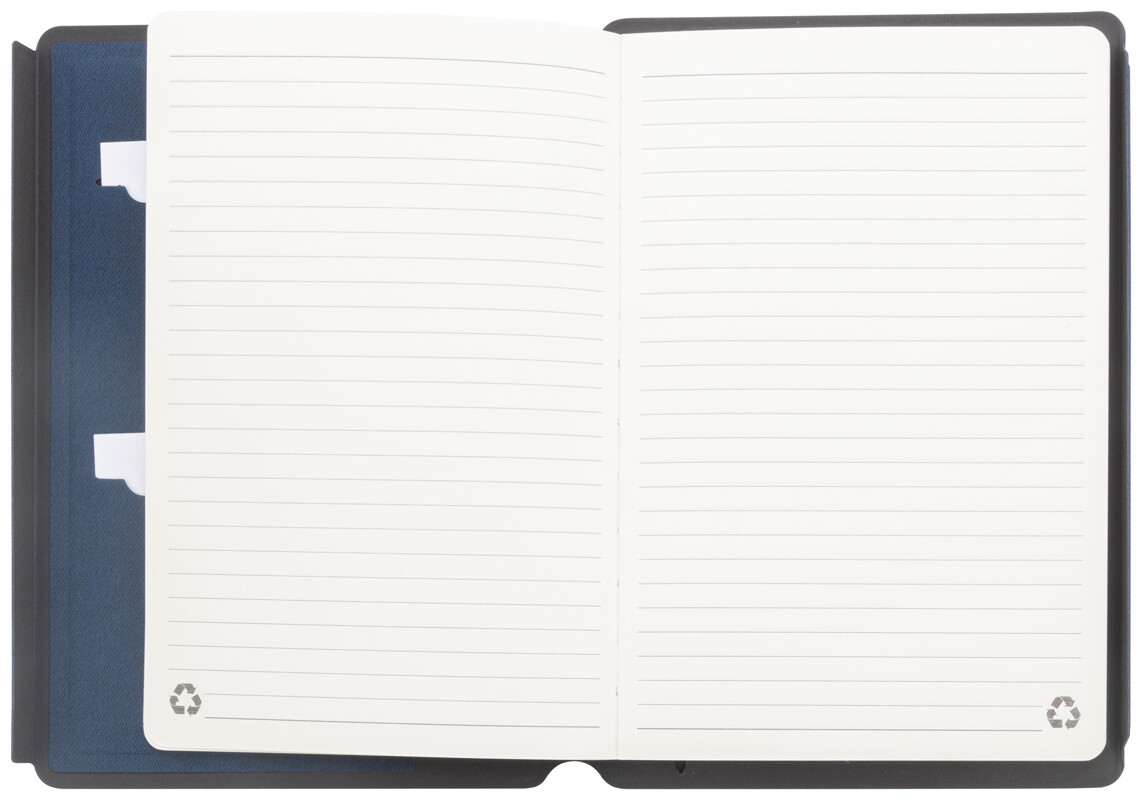 Sloha A5 na dokumenty z recyklované PU kůže s vnitřními kapsami na organizér a magnetickým zavíráním. Se 64 linkovanými listy poznámkového bloku z recyklovaného papíru.
