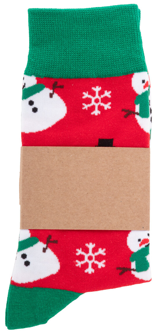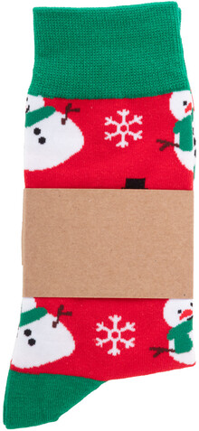 Pár vánočních ponožek ze 73 % bavlny, 25 % RPET polyesteru a 2 % spandexu. S potisknutelným sulfátovým papírem.