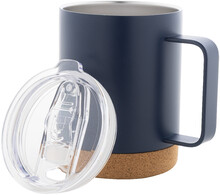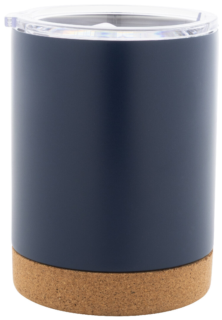 Dvoustěnný nerezový termohrnek s víčkem na pití a dnem z přírodního korku, 330 ml. V kraftové papírové krabici.