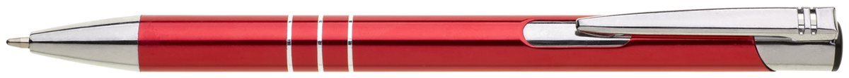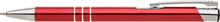 TRIALI hliníková reklamní tužka. Lesklé, červené tělo se třemi stříbrnými proužky a chromovými doplňky.