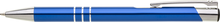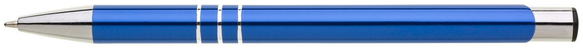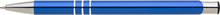 TRIALI hliníková reklamní tužka. Lesklé modré tělo se třemi stříbrnými proužky a chromovými doplňky.