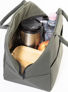 Chladicí taška na zip z měkké recyklované PU kůže s přední kapsou a hliníkovým polstrováním. S charakteristickým štítkem z recyklované PU kůže.