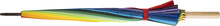 Velký automatický větruodolný deštník s 16 duhovými panely. S dřevěnou rukojetí, kovovým rámem a žebry ze skelných vláken. 190T pongee.