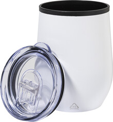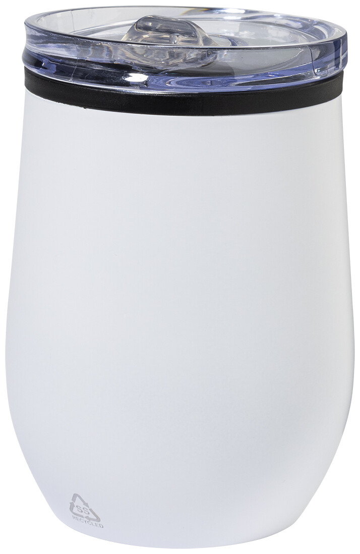 Dvoustěnný termo hrnek z recyklované nerezové oceli s vnitřní stranou z PP a víčkem z PS. 350 ml.
