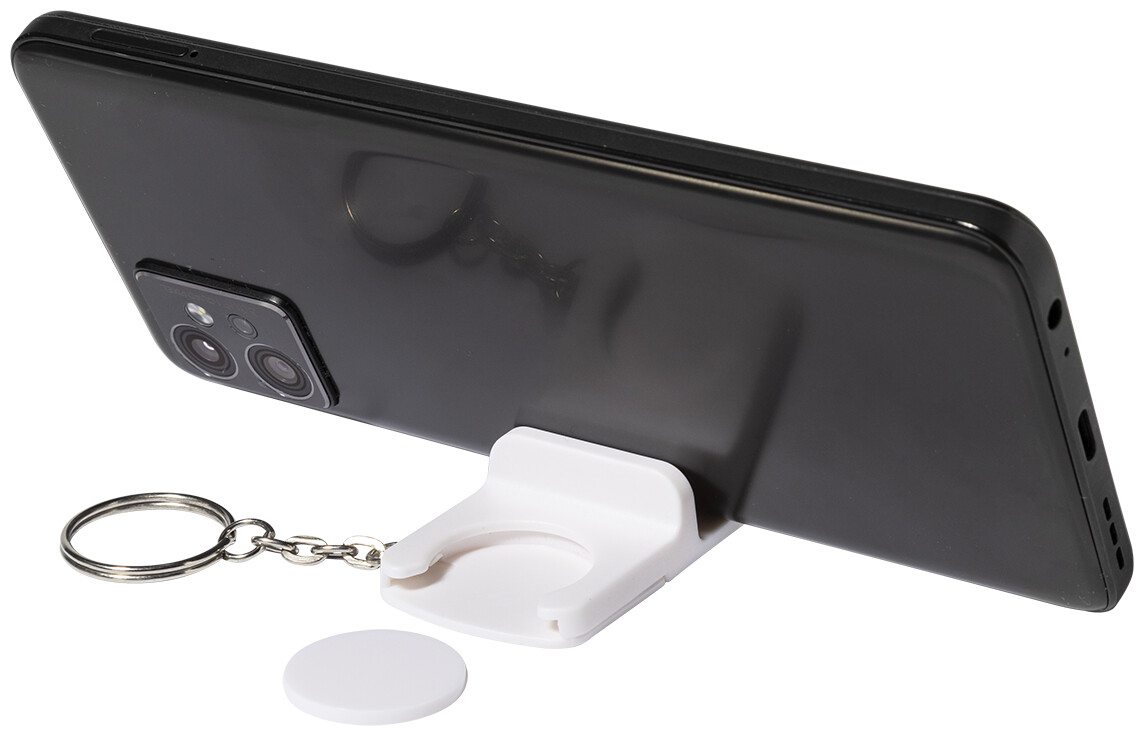 Přívěsek klíče se žetonem do košíku z recyklovaného ABS materiálu s držákem na mobilní telefon. Velikost mince: ø23×2 mm.
