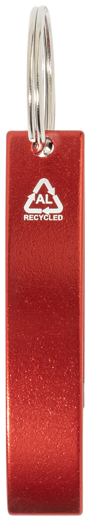 Otvírák na lahve z recyklovaného hliníku s kovovým kroužkem na klíče.