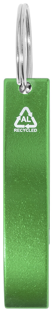 Otvírák na lahve z recyklovaného hliníku s kovovým kroužkem na klíče.