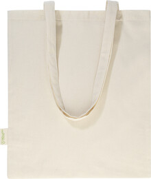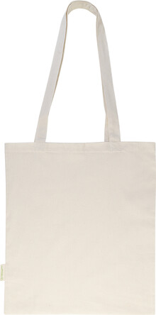 Nákupní taška s dlouhými uchy ze 70 % recyklované bavlny a 30 % RPET polyesteru, 140 g/m2. S výraznou etiketou orecyklované bavlně.