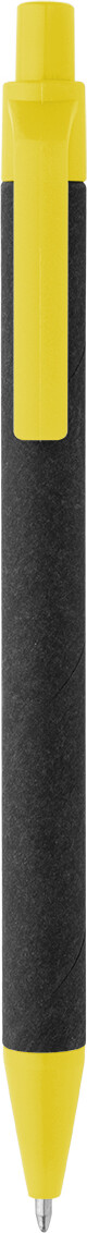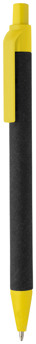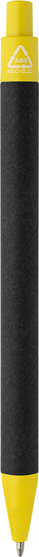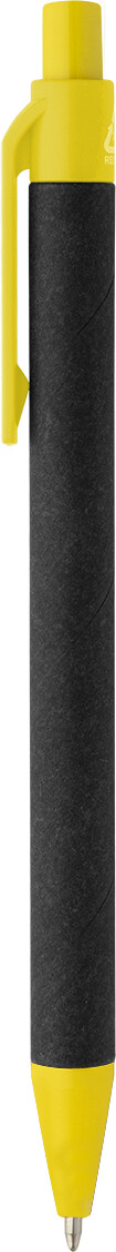 Kuličkové pero z recyklovaného papíru s černým tělem a recyklovanými ABS díly. S modrou náplní.