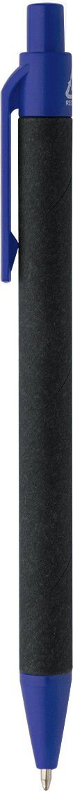 Kuličkové pero z recyklovaného papíru s černým tělem a recyklovanými ABS díly. S modrou náplní.