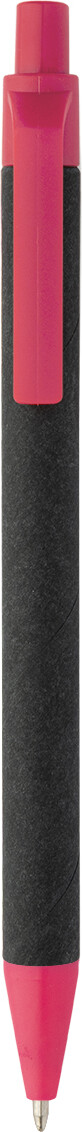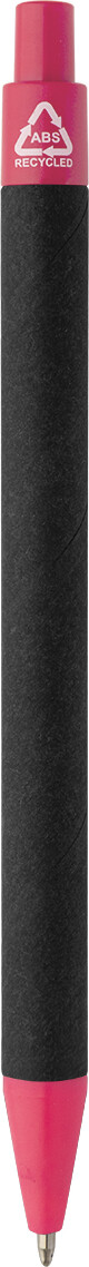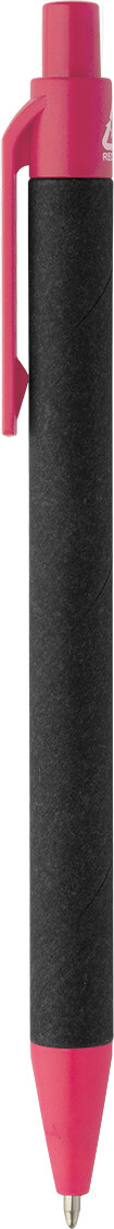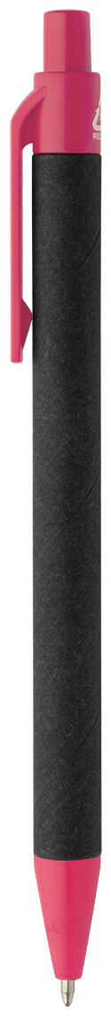 Kuličkové pero z recyklovaného papíru s černým tělem a recyklovanými ABS díly. S modrou náplní.