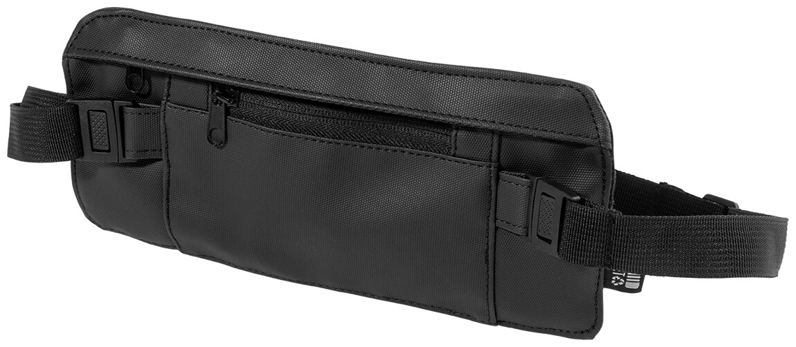 Úzká ledvinka z RPET s přední stranou potaženou PU, přihrádkou na zip a přední kapsou a nastavitelným popruhem. Polyester 600D RPET s PU zátěrem a výrazným štítkem RPET.