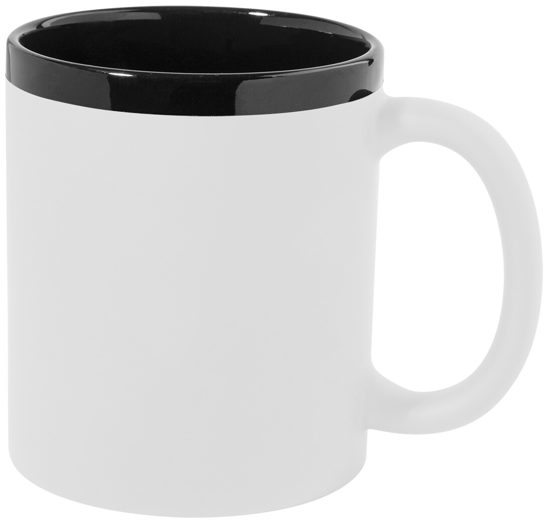 Keramický hrnek s měkkým pogumovaným povrchem a černým vnitřkem a okrajem, 300 ml. Se speciálním povrchem pro gravírování, gravírované logo ladí s barvou na vnitřní straně. V krabičce z kraftového papíru.