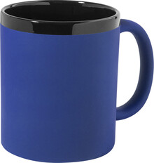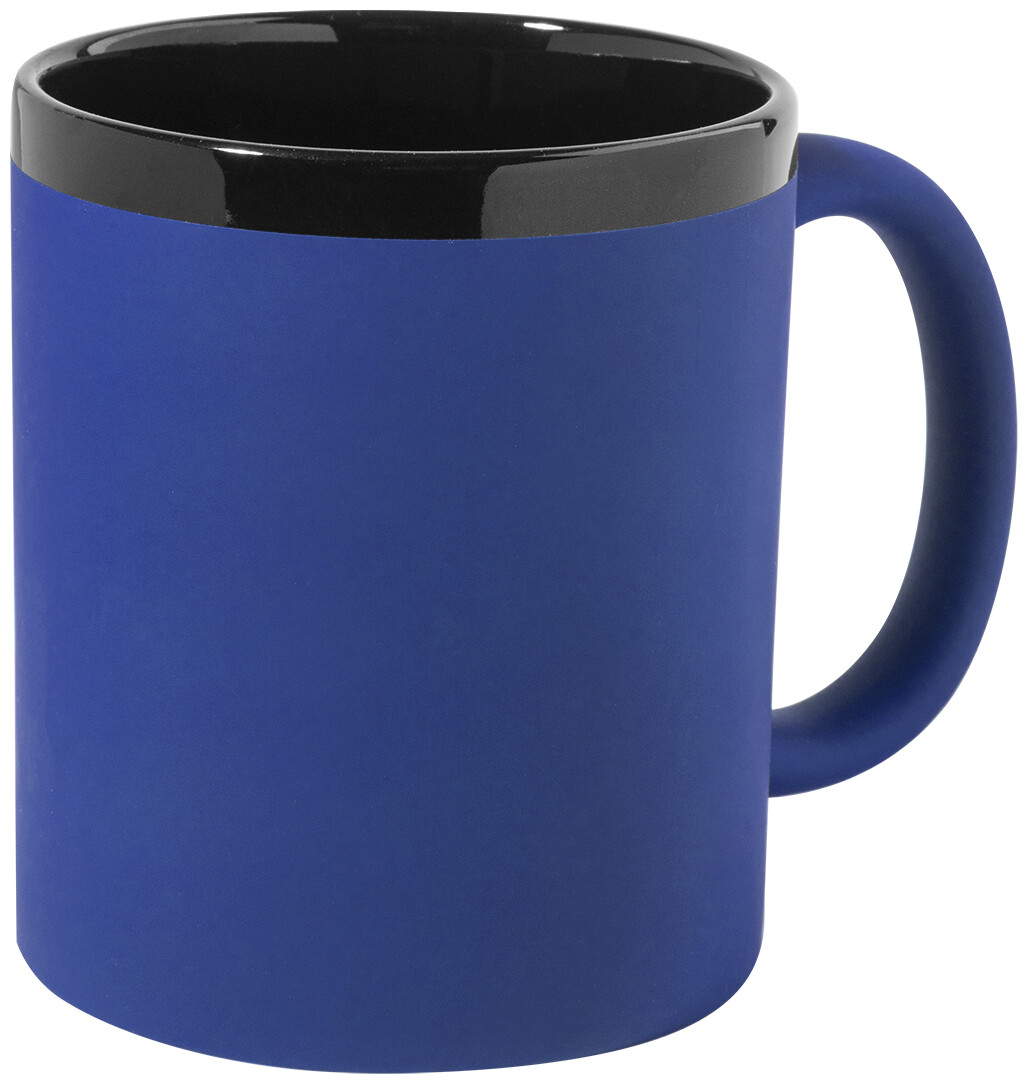 Keramický hrnek s měkkým pogumovaným povrchem a černým vnitřkem a okrajem, 300 ml. Se speciálním povrchem pro gravírování, gravírované logo ladí s barvou na vnitřní straně. V krabičce z kraftového papíru.