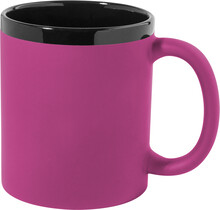 Keramický hrnek s měkkým pogumovaným povrchem a černým vnitřkem a okrajem, 300 ml. Se speciálním povrchem pro gravírování, gravírované logo ladí s barvou na vnitřní straně. V krabičce z kraftového papíru.