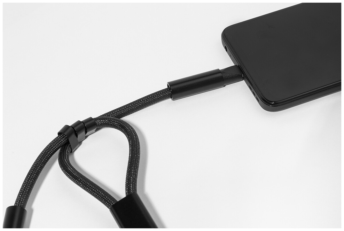 60W RPET kabel s náramkem na mobil CuffCharge, černá