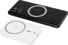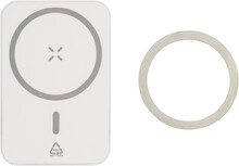 Power banka z recyklovaného ABS s baterií 5000 mAh a vestavěnou magnetickou bezdrátovou rychlonabíječkou (15 W). S USB-C vstupem a nabíjecím portem. Včetně samolepicího kovového kroužku pro použití magnetické funkce na jakémkoli bezdrátově nabíjecím zařízení. Kompatibilní s iPhone® 12 nebo novějším. Včetně nabíjecího kabelu USB.