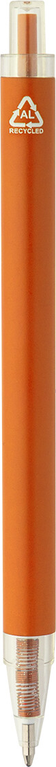 Kuličkové pero z recyklovaného hliníku s matným tělem a průhlednými RPET částmi. S modrou náplní.