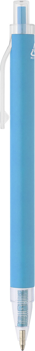 Kuličkové pero z recyklovaného hliníku s matným tělem a průhlednými RPET částmi. S modrou náplní.