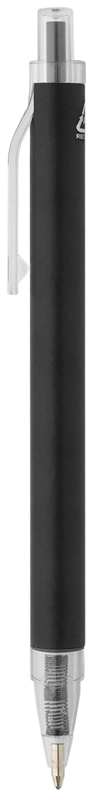Kuličkové pero z recyklovaného hliníku s matným tělem a průhlednými RPET částmi. S modrou náplní.