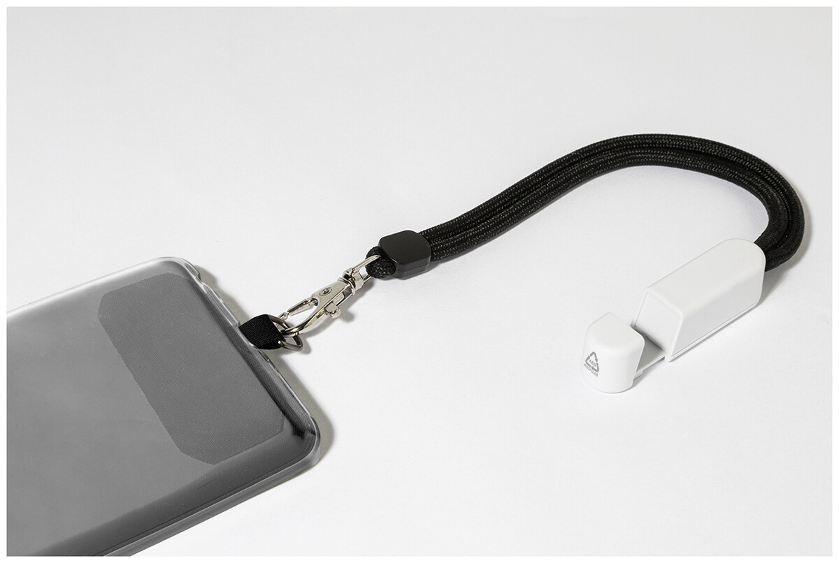 Držák na mobil z RPET s vložkou pro telefon a stojánkem na mobilní telefon z recyklovaného ABS.