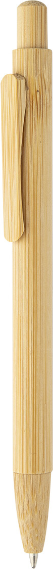 Kuličkové pero s bambusovým tělem, klipem, tlačítkem a špičkou. S modrou náplní.