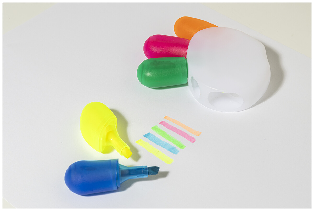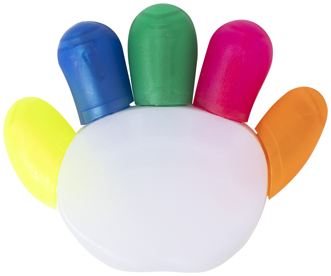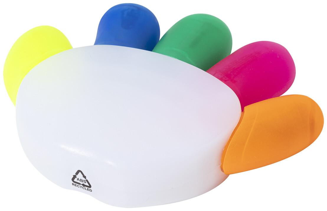 Zvýrazňovač ve tvaru ruky s 5 barvami z recyklovaného ABS plastu.