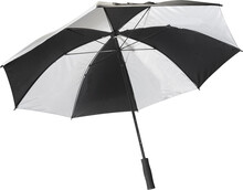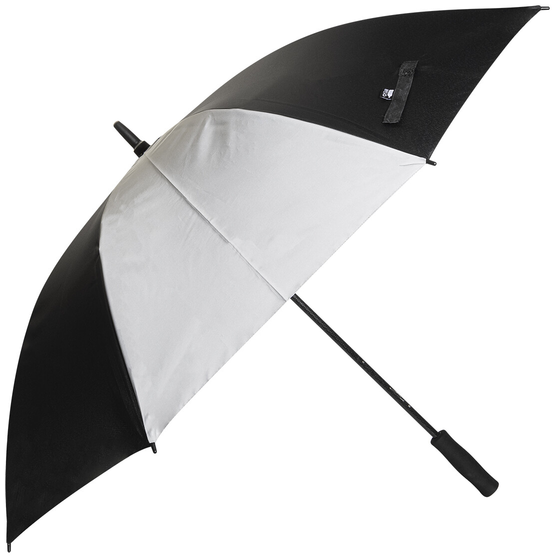 Velký, manuální větruodolný deštník se 4 panely z 190T RPET pongee a 4 panely z reflexní tkaniny. S celolaminátovým rámem a tyčí, rukojetí z EVA. 190T RPET pongee. S charakteristickým RPET štítkem.