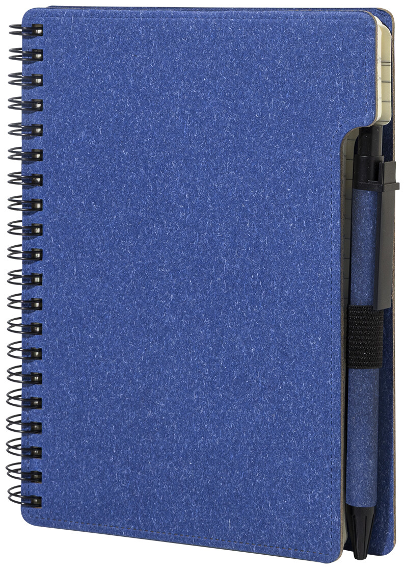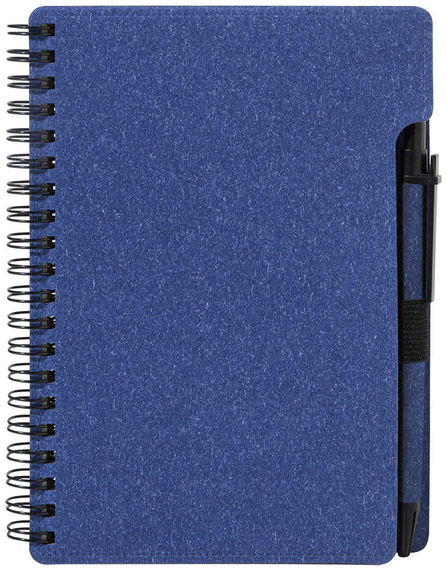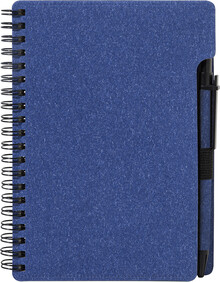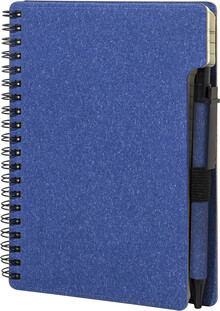 Spirálový blok A6 z recyklovaného papíru s 80 linkovanými listy. Včetně recyklovaného papíru a kuličkového pera z recyklovaného PP s modrou náplní.
