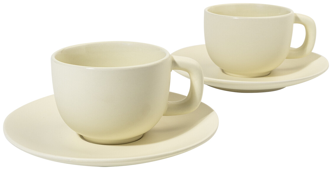 Vysoce kvalitní keramická sada šálků na cappuccino se 2 šálky a podšálky. S matnou vnější a lesklou vnitřní povrchovou úpravou. 200 ml. V kraftové papírové krabici.