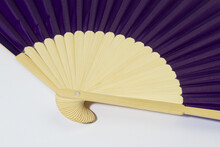 Vějíř z RPET polyesteru s bambusovými žebry.