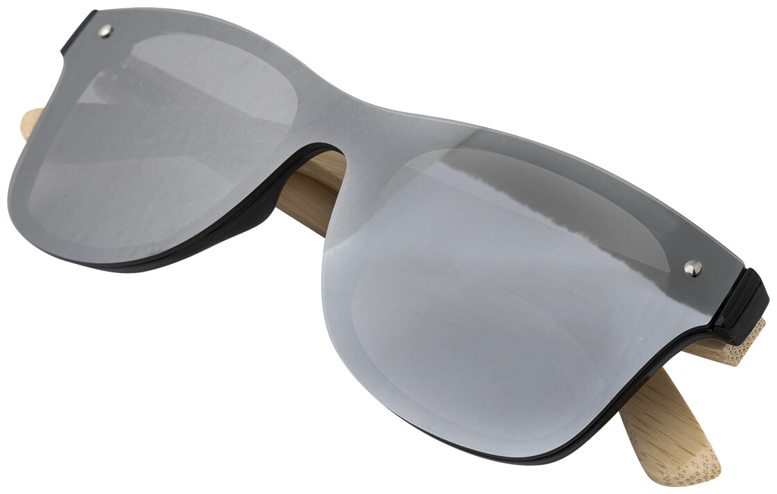 Sluneční brýle se zrcadlovými jednodílnými čočkami a bambusovými nožičkami. S ochranou UV 400.