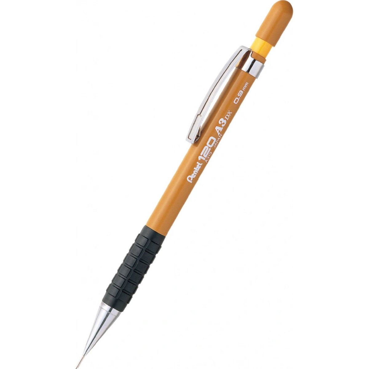 Mikrotužka Pentel 120 A3 žlutá 0,9 mm je praktická mechanická tužka s extra dlouhým kovovým hrotem, ideální pro přesné rýsování i práci se šablonami. Díky štíhlému tělu a pogumovanému úchopu zajišťuje pohodlné a stabilní psaní.